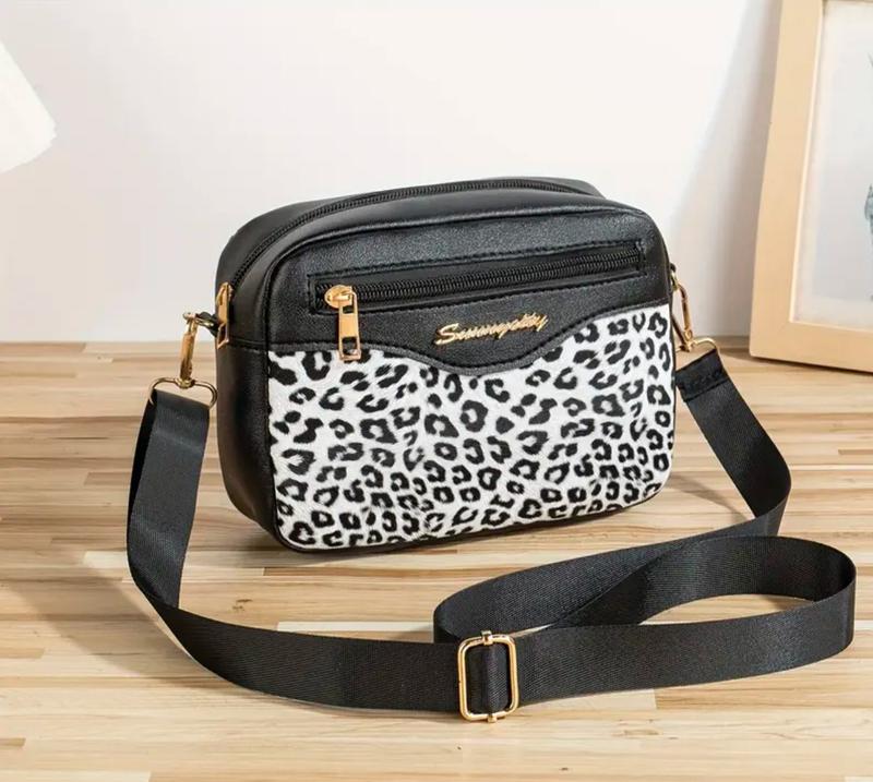 Новая модная женская сумка с леопардовым принтом, белого цвета, не большого размера и дизайном через плечо.
