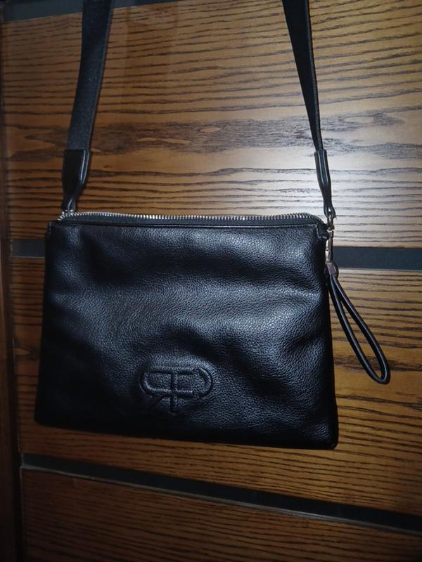 черная сумка,стан идеальный,кожзам но очень мягкий и качественный,вместительный, есть 2 нюанса находится на фото один, мягко подкрасить маркером а другой не заметный, в жизни не видно вообще