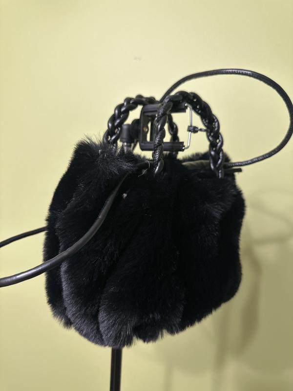 Маленька чорна сумка, пухнаста, з плетеними ручками і ременем. Нова!