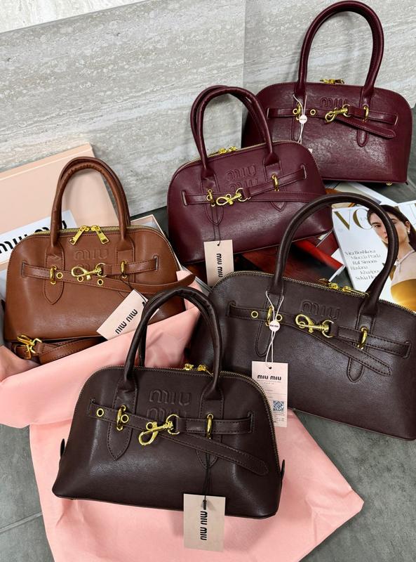 Женская сумочка Miu Miu Описание: Цвета: бургунди, шоколад, коричневый Внутри - одно большое отделение, которое открывается на молнии Также есть карман на застежке и дополнительный открытый кармашек Подкладка - из плотного текстиля Фурнитура - металлическая Материал: кожа Размер: 29 х 18 х 10 см Высота ручек: 13см Имеет длинный ремень в комплекте Пильовик - в комплекті Цена: 2699 грн.