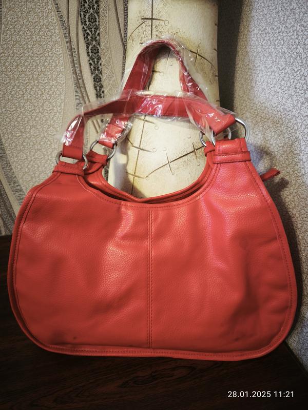 Красная женская сумочка Нью Йоркер Сумка среднего размера, 34 см х 21 см, ширина дна х 11,5см. Изготовлена из материала под кожу, имеет ручку или плечевой ремень длиной 20 см на кольцах, 3 кармана, в том числе 1 на молнии. Нова.