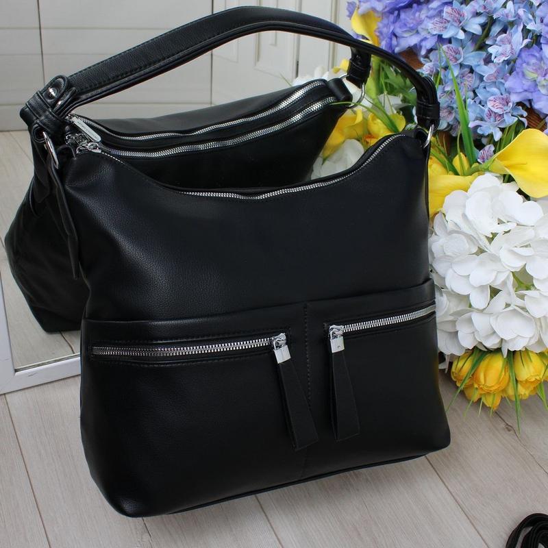 Материал: эко кожа Параметри: 32 см ширина по дну. 28 см высота. 13 см глубина. Высота ручки 26 см. В комплекте длинный плечевой ремень 135 см. Особенности: Два отделения на молнии, открытый карман и карман на молнии. На обратный и лицевой стороне карман на молнии.