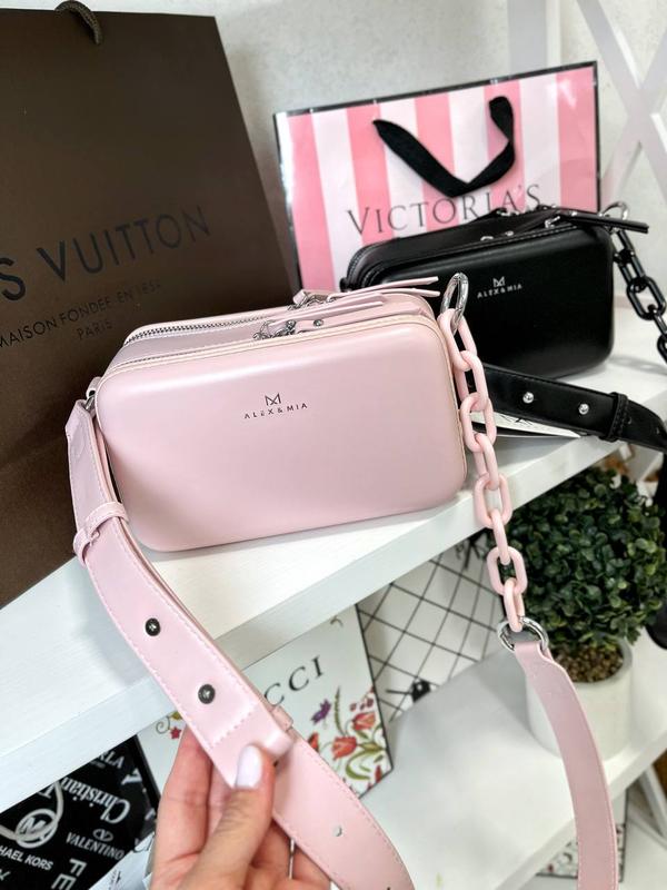 Сумка чемодан 2 отдела Цена: 780 грн Материал: экокожа Цвет: лаванда, пудра В комплекте: пыльник, пакет лого Размер: 21/12/9 Ремешок регулируется, часть кольца съемная по желанию. 2 отдельные отделы на встречных змейках ✅ Носится на две стороны ✅