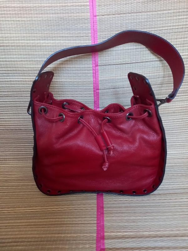 Красная кожаная сумка,высота 23см,ширина 28см,меет дополнительную длинную ручку.