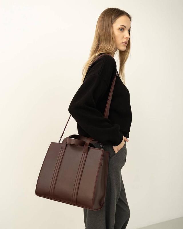 Жіноча трендова сумка 🩶 ⚫️Фото та відео реал ⚫️Модель: 187 ⚫️Розміри: 27*30*12 см ⚫️Тканина: екошкіра ⚫️Кількість відділень – 2 ⚫️Кольори : чорний, Бордо, мокко ⚫️Ціна: 920 грн Зустрічайте нашу новинку🩷 Ця сумочка створена, щоб вразити вас своєю унікальністю. Зручні кишені та високоякісні матеріали роблять її ідеальним вибором для будь-якого випадку.