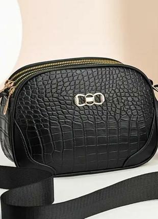 Елегантна сумка через плече з візерунком крокодила, регулювальним ремінцем,замком на блискавку,підкладкою та трьома відділами. Висота 14см Ширина 20см Глибина 7см
