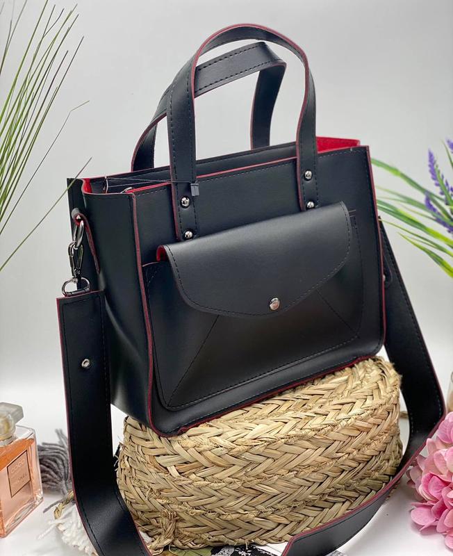 ⚪️В наличии в количестве Женская трендовая сумка 🩶 ⚫️Фото и видео реал ⚫️Модель: 064 ⚫️Размеры: 28*21*11 см ⚫️Ткань: экокожа ⚫️Количество отделений-1 ⚫️Цвета: черный с красным Для любительниц total black - все наши модели могут быть выполнены в черном цвете 😌Самый элегантный цвет эвер!