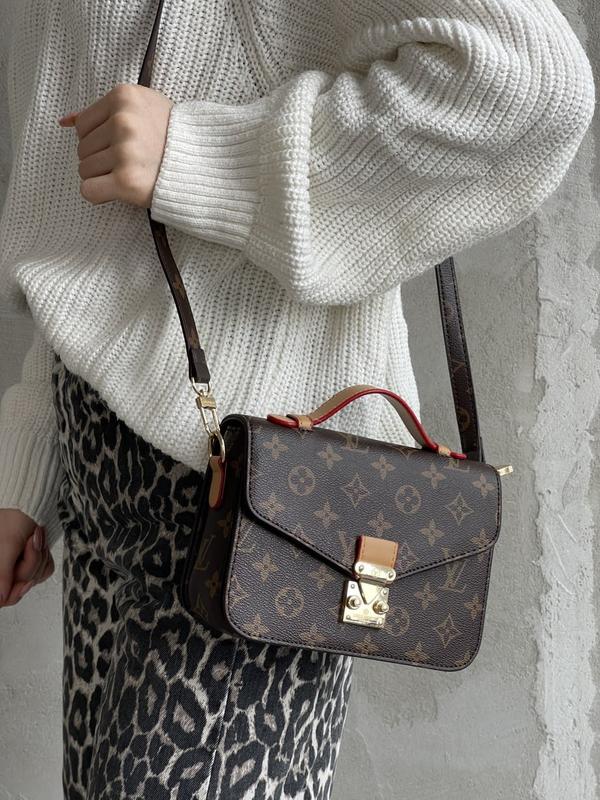 Medium size: коричневий+беж. 20389-1 —————— Small size : коричневий+беж. 20390-1 Сумочка в три отделения внутри, одно из которых на блузке, снаружи одно отделение на молнии. Каркасная форма. Фурнитура брендируется. Материал: эко-кожа, держит форму Размер Medium size: 25х17х9 см. Размер Small size: 19х13х8 см. Комплектуется длинным ремнем, регулируется. ⭐️ Пильовик в комплекті.