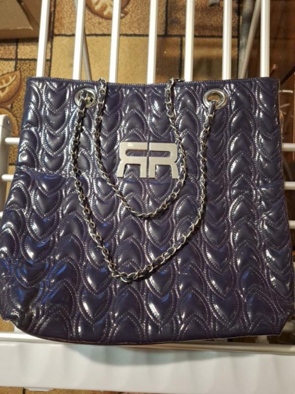 Сумочка женская. Цвет баклажан, лакированная. В пользовании не была, но год размеруен новый, поэтому пишу что в идеальном состоянии. Большая, высота около 32 см (фото), вместительная, закрывается на магнит в виде кнопки. Замочек на кармане работает. если нужно будет попросить сделать видеообзор сумки.