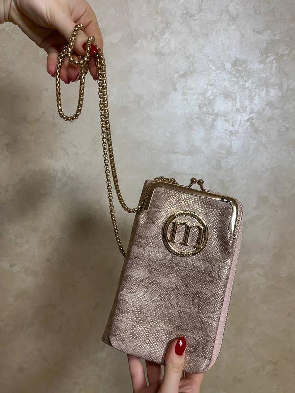 Удобная маленькая сумка-кошелек фирмы Monnari под змеиную кожу в розовом цвете. Одно большое отделение, внутри еще есть один небольшой карман для копек. на застежке и карман снаружи спереди. Ремешок под золото длинный, фурнитура под золото. Общее состояние отлично, но немного некачественная молния. Возможен торг. Не носилась