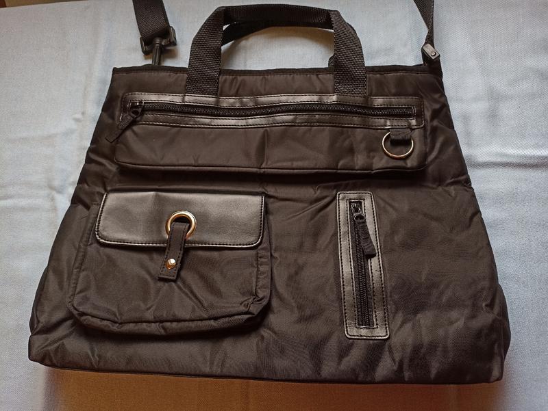 Состояние - новой. Качественная, легкая (332г), содержимое и практичная. Высота - 29,5-30см Ширина верх - 35см низ - 36см Глубина - 7см Плечевой ремень регулируется. Сумка имеет 3 кармана снаружи. Внутри одно большое отделение, небольшой карман и малые отделения для карточек. Без дефектов.
