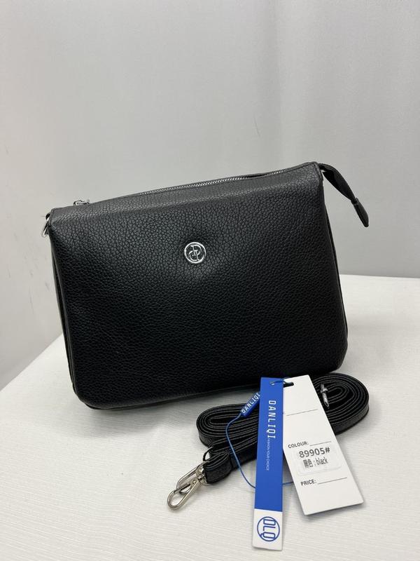 3 отделения,2 кармашка на замочке, длинный ремешок