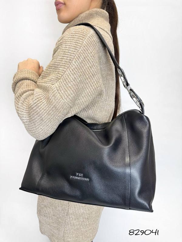 829041 Новинка ❤️👜 Сумка Polina декор Кільце шкіра Ціна: 2500 грн на змійці, 2 відділення всередині Ручка з декором кільця - дуже зручна 👍 ремінець в наявності Матеріал: натуральний замш та натуральна шкіра 34/24/14 Колір: чорний