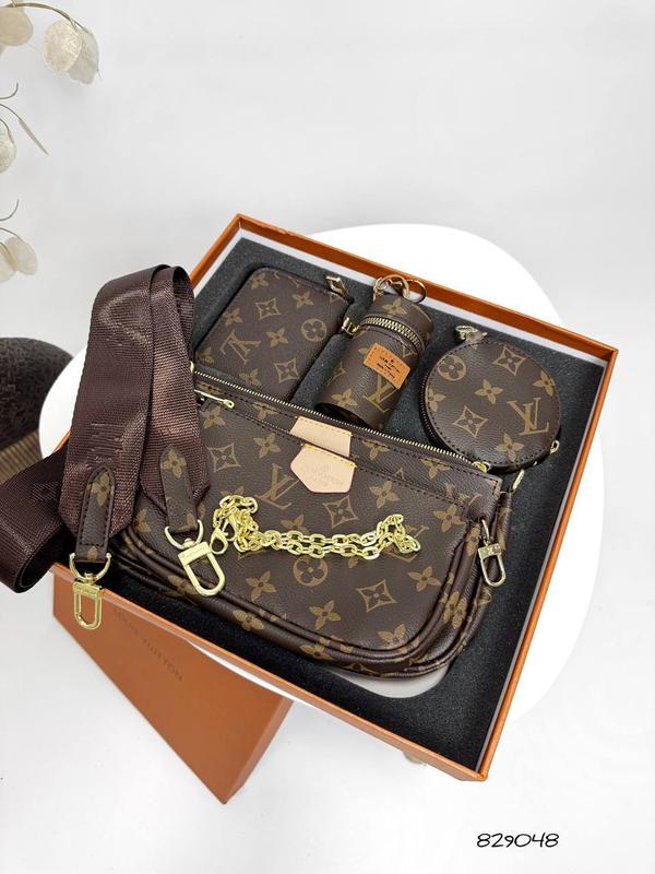 Цвет: монограмм ремешок шоколад регулируется с лого Цепочка в наличии Упаковка люкс ✅ Материал: канва люкс качество Размер сумки : 23/13; Размер мини сумки 19/11 см Размер кошелька : 8/7