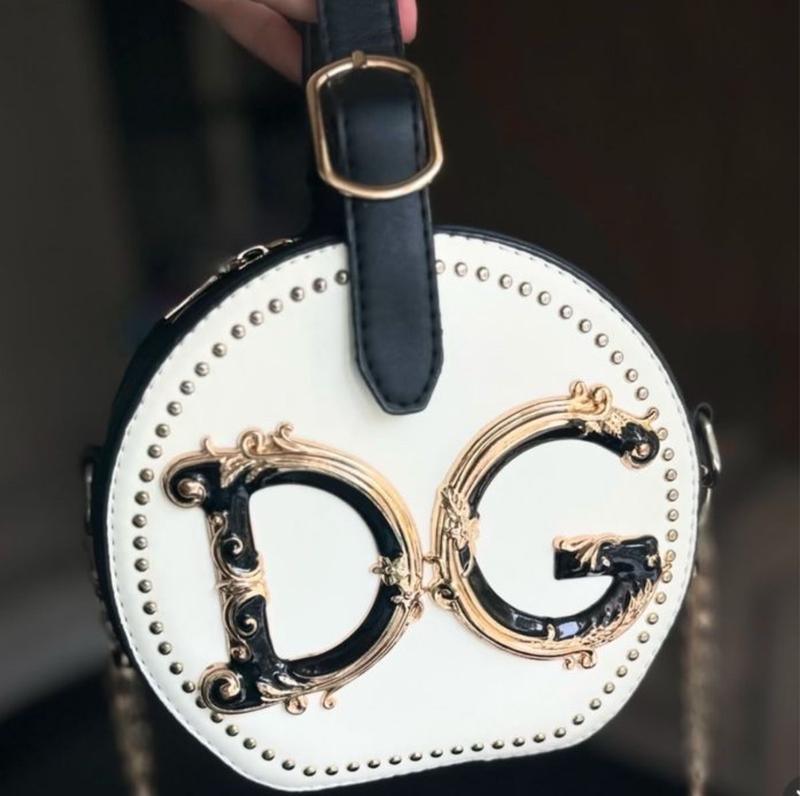 Кругла сумка зі стійким дном. Короткий ремінець + зʼємний довгий металевий ремінець Стан 8/10 (металевий ремінець трохи потемнішав) Прохання не телефонувати. Відповідаю на повідомлення в додатку. Диаметр - 18см Ширина дна - 7,5см Довжина ланцюжка - 128см