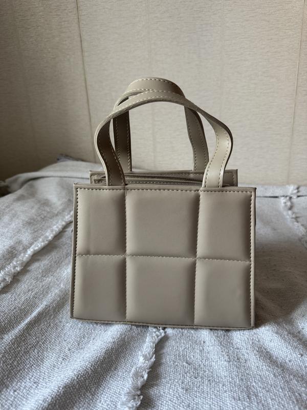 Еко шкіра, тримає форму. Має молочний відтінок (ближче до слонової кістки) Без довго ремінця ( якщо у вас він є, то можна зачепити) Замок на змійці та в середині карман. Стан новий !