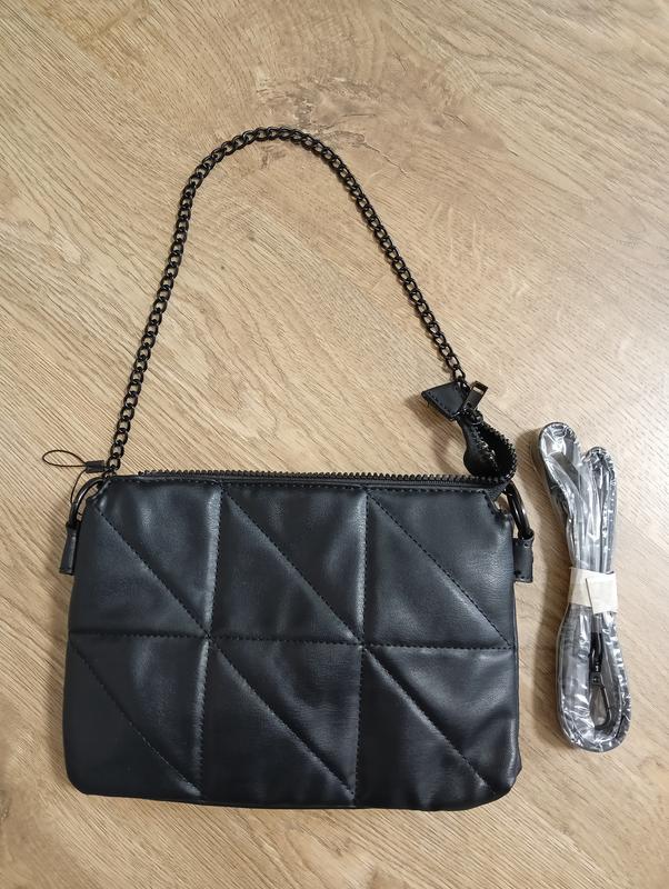 Новичка маленькая женская сумочка. В середине разделена на два отделения, и есть маленький карманчик на замочке. Высота 18см., ширина 25см., глубина дна 7см. Есть ручка через плечо, и небольшая на цепочке.