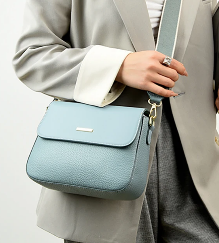 Голубая сумка, кожа
