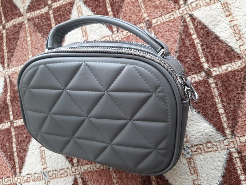 Ширина 21см, высота 15см, глубина 7см. Есть короткая ручка и длинная. Два отдела и дополнительный карман извне. В одном отделе имеется дополнительный карман на молнии, в другом дополнительный карман без застежки.