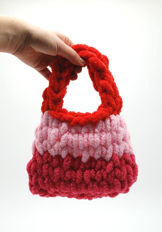 Сумка ручной работы вязаная из пряжи Alize puffy. Вещь которая покорит сердечко маленькой принцессы. Размер: 15см высота 19см длина Цена 150 грн.