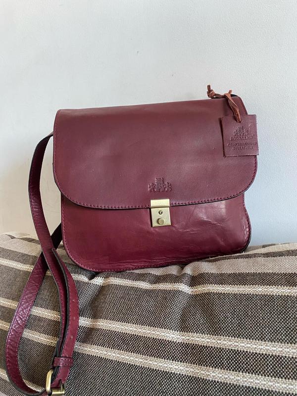Отличная стильная сумка из натуральной кожи. Дефектов нет, немного трещинки на ободке ремня. 26/28,5см, дно 9,5см, ремень 135см.