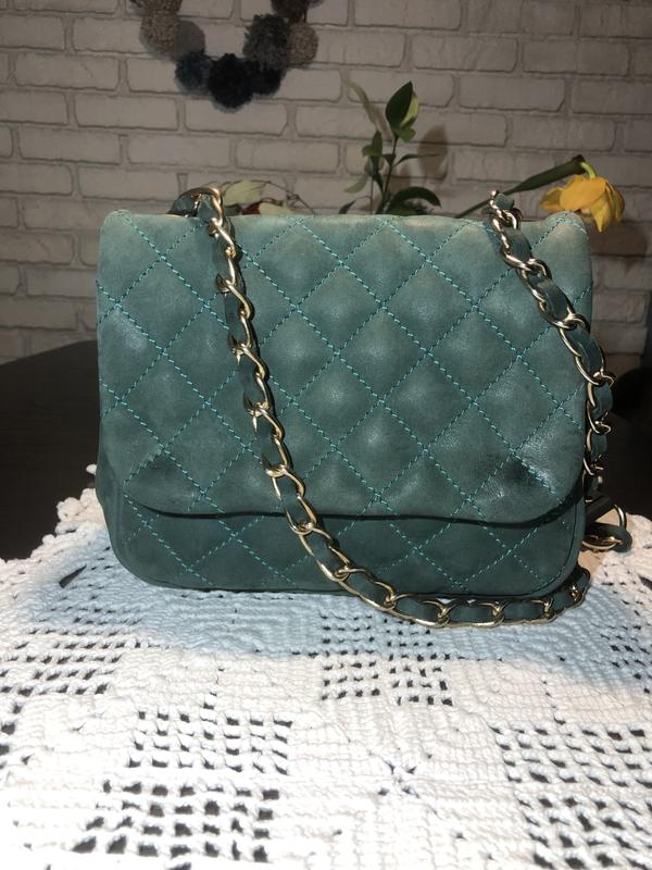Сумка конверт через плечо зеленого цвета подойдет как для повседневной носки, так и для особых случаев Без нюансов. Цвет и материал в реальности без недостатков. Фото искажает состояние. Все исправное. Закрывается на 2 заклепки