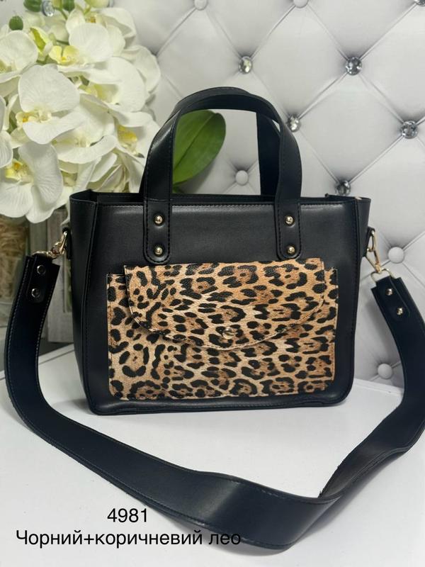 📣Новинка📣 Код 4981 Эко кожа Турция черный+ леопардовый принт (на кармане) 28 см ширина. 22 см высота. 11 см глубина. Высота ручек 12 см. Высота плечиного ремня 45 см. Длина плечиного ремня 100 см с карабинами. Одно отделение на молнии. Внутри карман для телефона и карман на молнии. На лицевой стороне карман под клапаном.