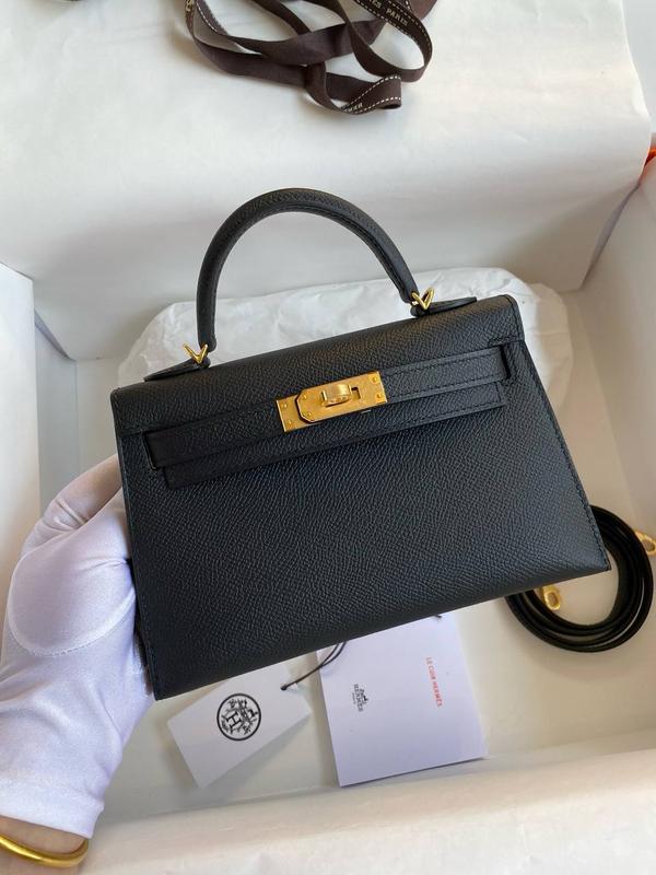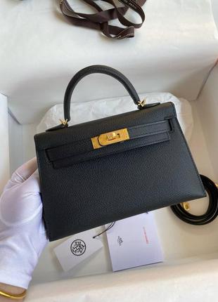Сумка в стиле мини Келли Эрмес, 19 см. Черный цвет, золотистая фурнитура, натуральная кожа, премиум качество. брендовая коробка, пыльник, ремень, платок