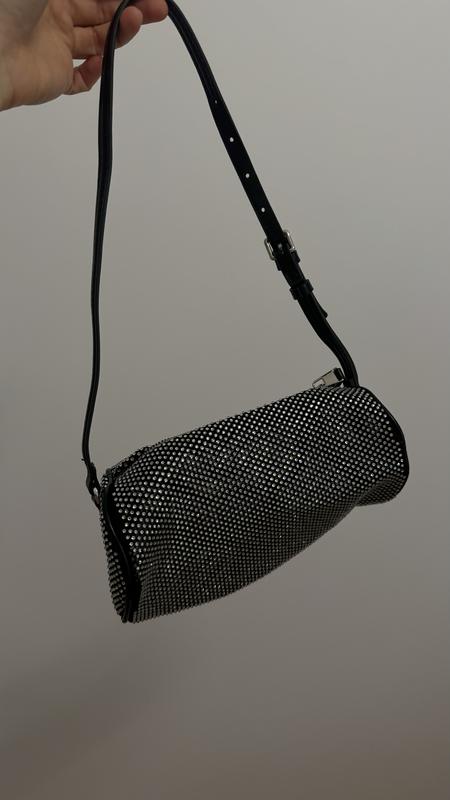 Сумочка вечерняя По форме багет, мягкая Материал сеточка за камушками, стразами Состояние новой Очень красиво блестит Длина 23 см