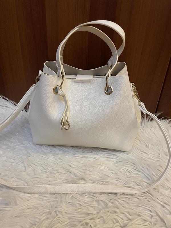 Вмістка сумка Має 1 кишеню на блискавці та 2 відділення Довгий ремінець у комплекті Без дефектів в чудовому стані Заміри: Висота 23см Довжина в самій широкій частині 25см Дно : ширина 14 см,довжина 29см