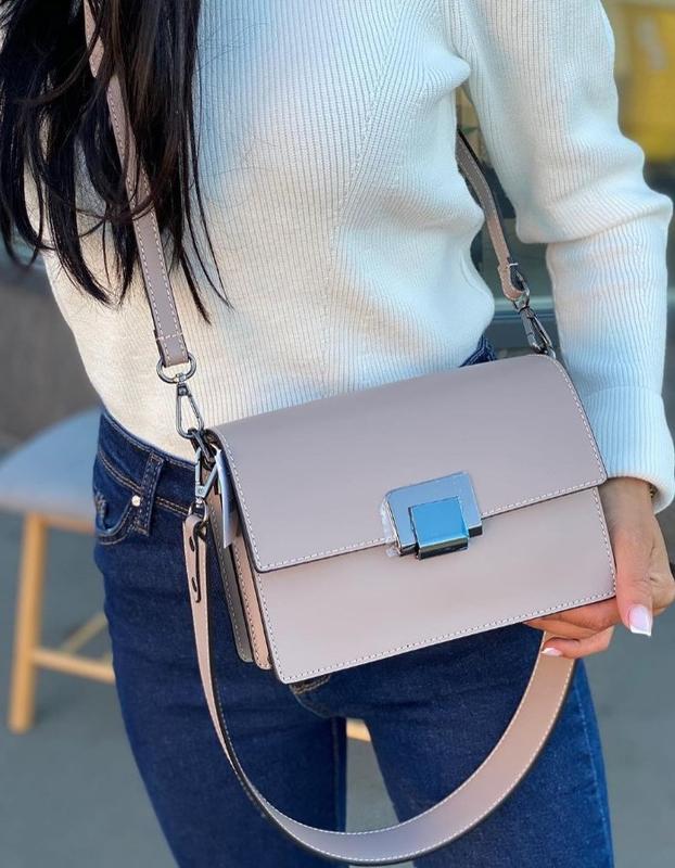 Кожаная сумка кросс-боди италия стильная сумочка клатч пудра мини натуральная кожа