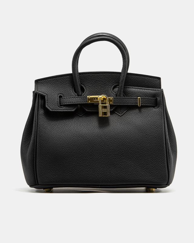-Материал: Кожа -Цвет: Черный -Фурнитура: Золотистого цвета -Размеры: 25 × 20 × 12 см -Стираина производства: Китай 🇨🇳 -Закрытие: Логотипная застежка на металлической фурнитуре и замок -Отделение: Одно основное отделение, внутренний карман -Ремень: Две короткие ручки для ношения в руке -Стиль: Классический, элегантный