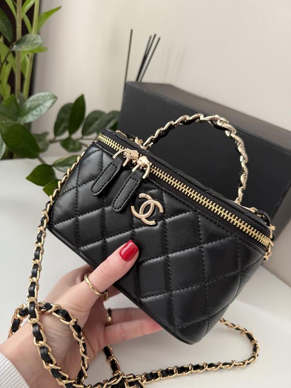 -Материал: Кожа -Цвет: Черный -Фурнитура: Золотистого цвета -Размеры: 16 × 10 × 8 см -Стираина производства: Китай 🇨🇳 -Закрытие: Молния -Отделение: Основное отделение, Внутренние карманы для мелочей -Ремень: Цепочка с кожаным плетением, позволяет носить через плечо или плечи -Стиль: Стильный, компактный, подходит для вечерних выходов