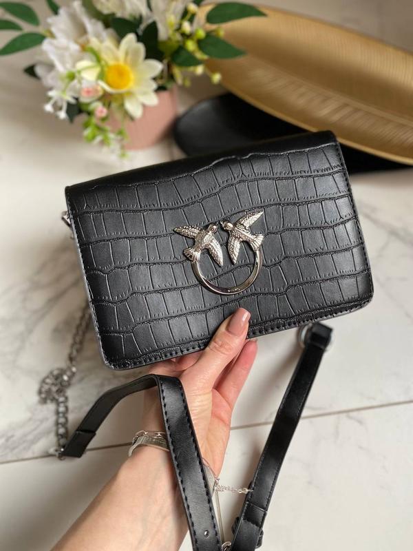 Pinko Арт: 894 Матеріал: штучна шкіра Розмір: 14*21*8 см Колір: бежевий, чорний Біла фурнітура Зйомний плечовий ремінь, регулюється