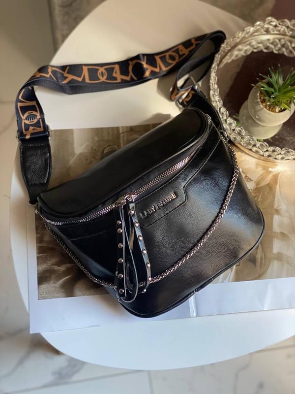 Арт: L-6164 Материал: эко кожа Размер: 23*21_23*9 Цвет: черный В комплекте металлическая цепь и съемный широкий текстильный ремень Стоимость: 501 грн