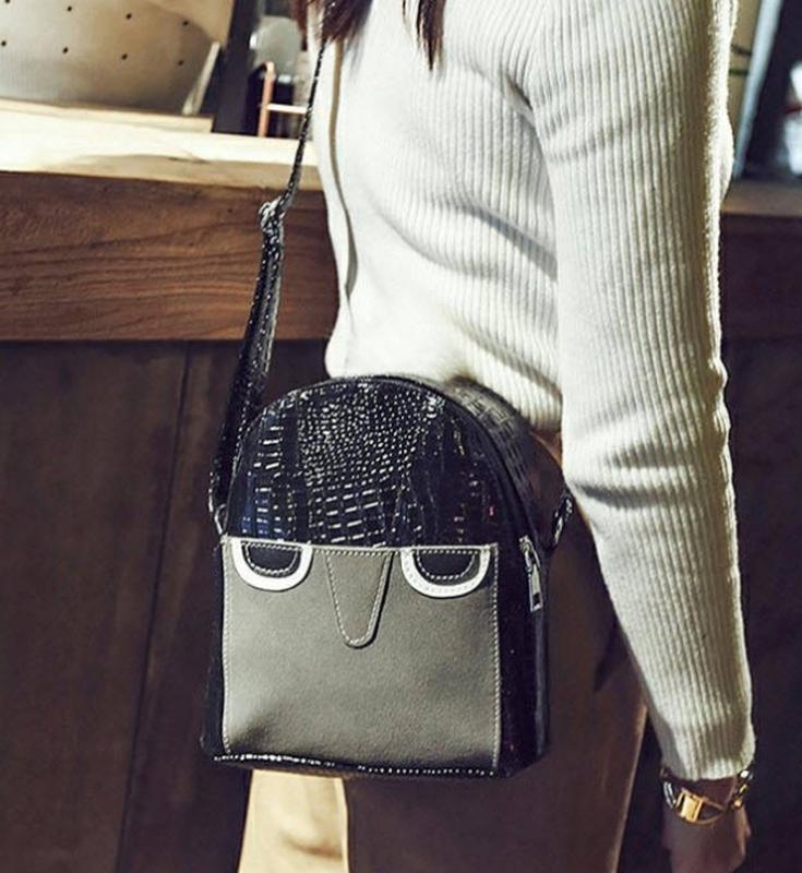 милые и не обычные сумки с помпоном и глазками. Цвет: черный с серым, с красным, с зеленым Размер: 23*18*9см Материал: эко кожа под крокодил