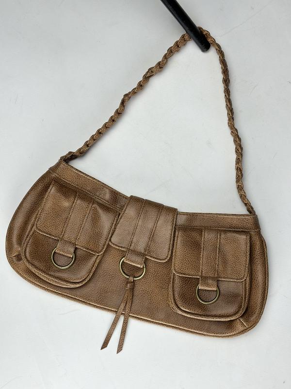 сумочка из фактурной кожи в карамельном цвете по накладным карманам, ручка сделана косичкой, качественная сумка из плотной кожи