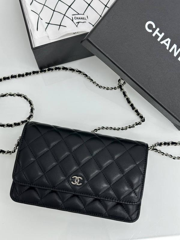 Клатч кожаный на цепочке chan el черный серебро/золото