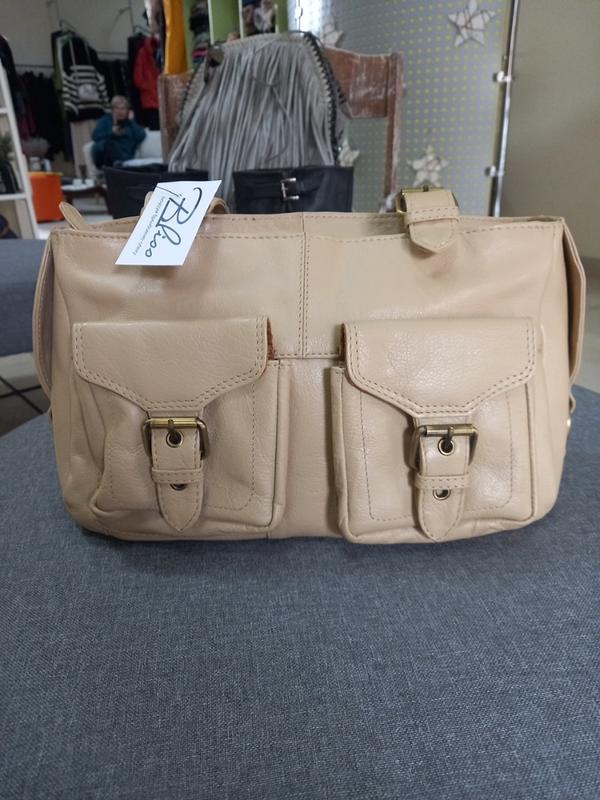 Женская кожаная сумочка б/у идеального состояния бежевого цвета