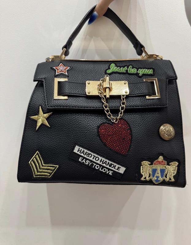 Сумка черного цвета с яркими патчами, была куплена в оригинальном магазине, носилась несколько раз, состояние идеально больше фото в сообщения Из дефектов: отсутствуют несколько камешков (вывно на фото)