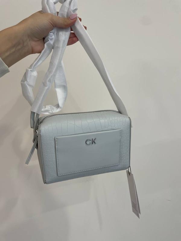 В наличии сумочка Calvin Klein Цвет указанный производителем: Pearl Grey Croco СЕН Отдел замыкается на: Молния Размер сумочки: Малая (не содержит А4) Размеры: 18 × 12 × 7.5 см