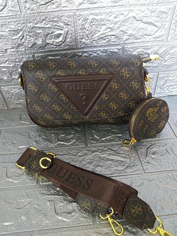 Розмір 25/16/7 Матеріал: еко шкіра, на одне ввіділення ,є карманчик. Металева фурнітура в золоті. Колір коричневий,широкий ремінець 80см.