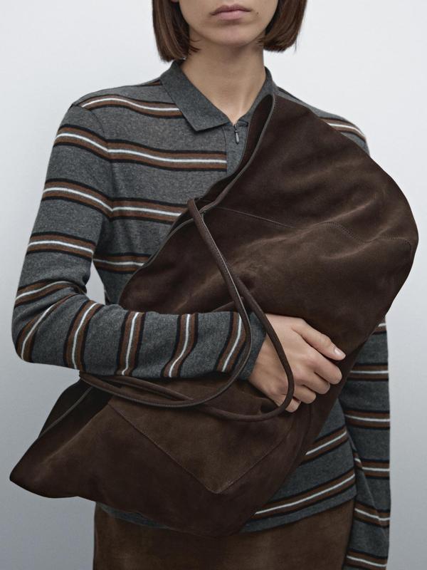 11 350 Сумка типа шоппер. Сумка выполнена из коровьей кожи и отделкой замш. Ремень на плечо. Закрытие с помощью кнопки типа snap. КОРРИЧНОЕВЫЙ | REF. 6920/646 ВИСОТА X ШИРИНА X ГЛИБИНА: 61 X 30 X 20 СМ