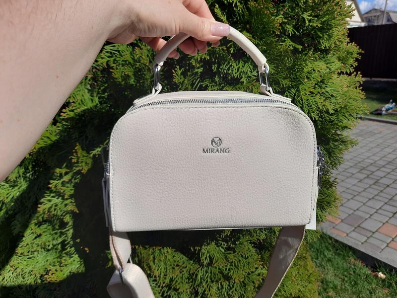 Сумка Mirang Материал - плотная экокожа премиум качества✨ Цвет: молочный🔥 Сумка закрывается на молнию. Имеет 1 отдел Дополнительно крепится ремень из экокожи с возможностью регулировки длины, крепится на карабинах, вся фурнитура очень качественная. Чрезвычайно вместительная и эстетическая модель😍 Замеры: Длина - 25 см Высота - 16 см Ширина - 9 см