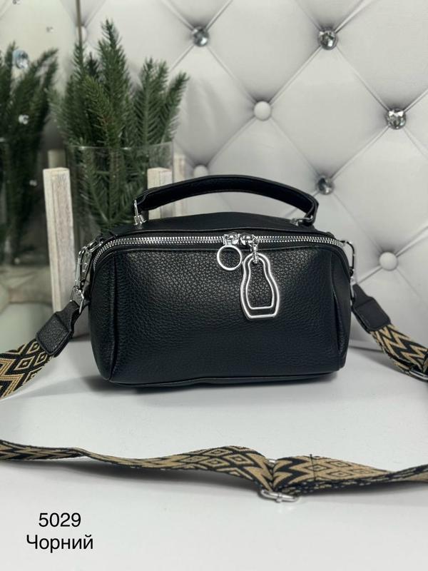 Женская сумка сумочка черная кожаная из эко кожи с длинным текстильным ремешком через плеч...