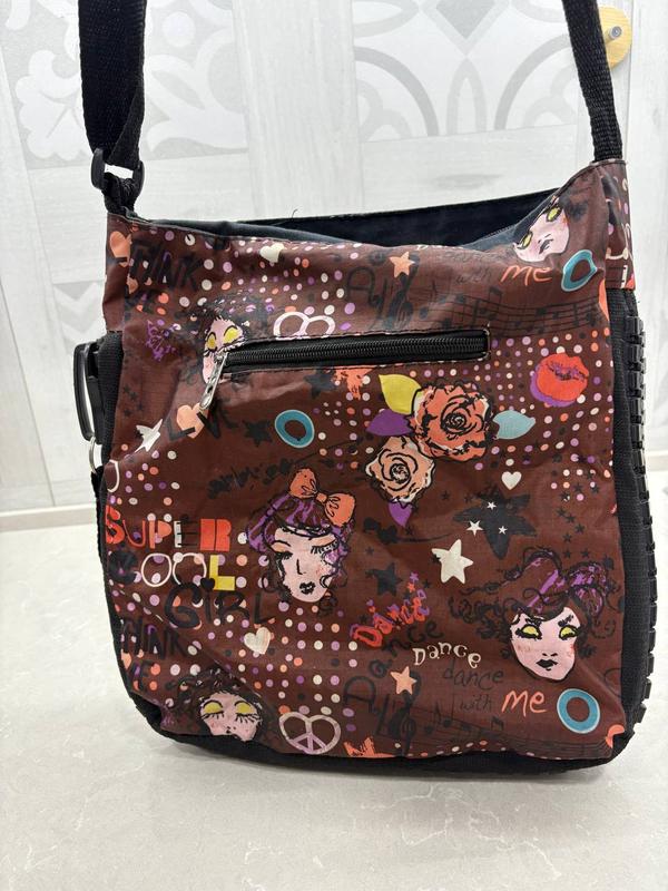 Над легкая сумка-плащевка Украшает и расширяет большая тракторная молния. 1 наружный карман на молнии, 1 отделение, 1 внутр малый карман Ткатная прочная ручка 130 см на молне отпал хвостик (фото), функционал не страдает высота 35, ширина 28