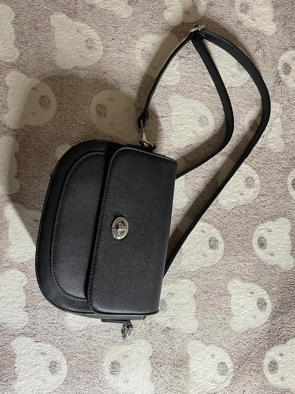 сумка черная маленькая в хорошем состоянии есть маленькие дряблости по бокам, но они не заметны