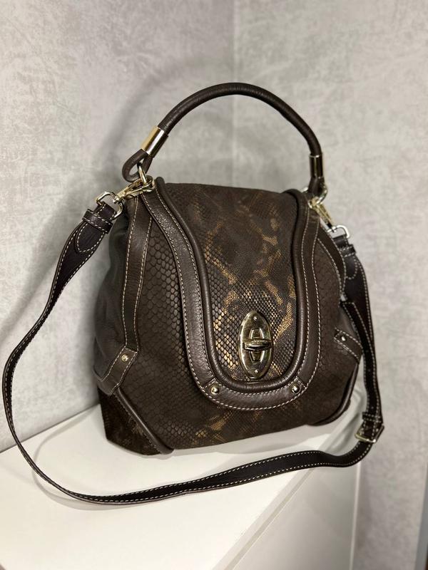Шоколадная объемная сумка Очень содержимое Натуральная кожа Удобная ручка 35 см, удлиненная ручка (регулируется) - максимальная длина 118 см Размер основания 25 (ширина), 38 см (расширяется выше), 22 см (ширина наверху) * 35 см (высота) Сумка грушевидной формы Бока 17 см Фурнитура в очень хорошем состоянии, но есть следы ношения 🍬 Носили буквально несколько раз. Нюанс на последнем фото