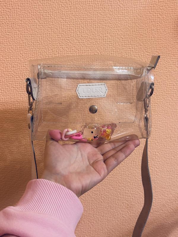 сумочка прозора, силіконова, на кнопочці та змійці, ручка на карабінах, є пояс (фото 4), розміри на фото