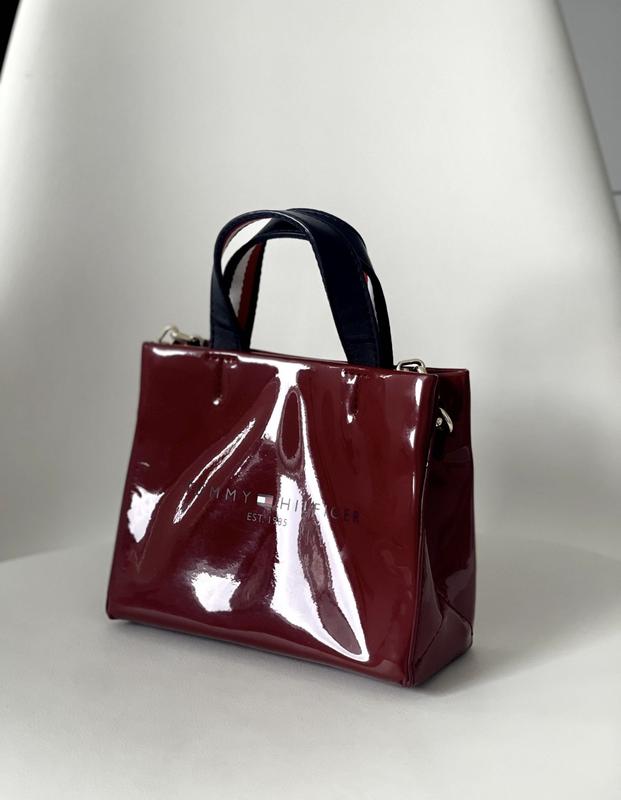 Оригінальна сумка Tommy Hilfiger. Сумка виготовлена зі штучної лакової шкіри. Деталі: застібка на магніті, 1 відділення, золотиста фурнітура. Зручна, доволі містка, у мене містився телефон, ключі, гаманець, серветки, косметичні невеликі засоби. Одягала пару разів на вихід, одна маленька подряпина з права внизу(на фото 4). Ширина 19 см, висота 15 см, ширина дна 8 см, плечовий ремінь 120 см. Без коробки та мішечка